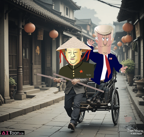Graphic Artificial Intelligence is prompted to create the stage, the setting, the backgrounds for the single-panel cartoons. The characters, the "Little People," are the inspiration of Dan Youra as the stand-ins for the stars.
