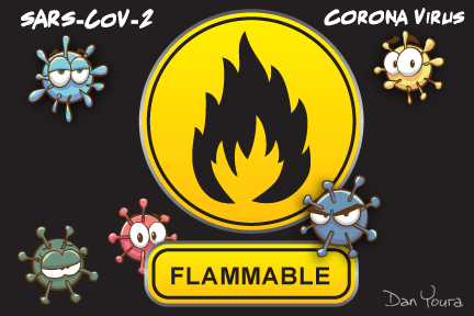 The artwork on the 6 posters in the collection of Virus Hazard Warnings Sick Posters paints a menagerie of cartoon viruses –– colorful, with bulging eyes and little round bodies encircled by spikes, mimicking the spike proteins on the SARS-Cov-2 Corona virus. The viruses depicted on these posters are "cartoonish" in style. Some are almost cute and likable. Some are scary and threatening. They look like salmon eggs or a bucket of tadpoles. Read more "We have met the virus and it is us" . . .